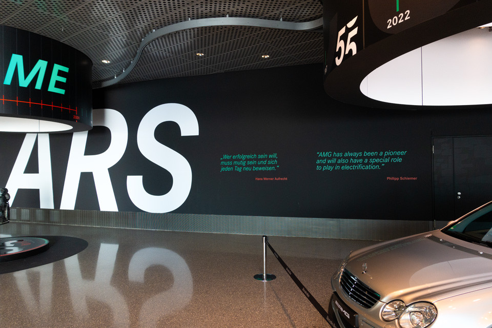 Im Auftrag von und in enger Zusammenarbeit mit NEONRED hat mein Studio das grafische Konzept für die aktuelle Ausstellung „Youngtimer“ im Mercedes-Benz Museum Stuttgart entwickelt und umgesetzt. Die präsentierten Fahrzeuge aus den 1990er- und 2000er-Jahren werden dabei aufwendig in Szene gesetzt.