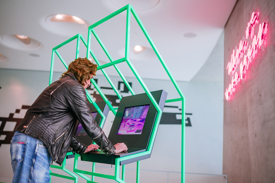 Die grafische Gestaltung umfasst Print für Vitrinen, Podeste und Wandgrafiken, Screen/UI-Design für vier interaktiven Stationen, Animationen sowie die Erstellung und Programmierung einer eigenen Fashion-App.